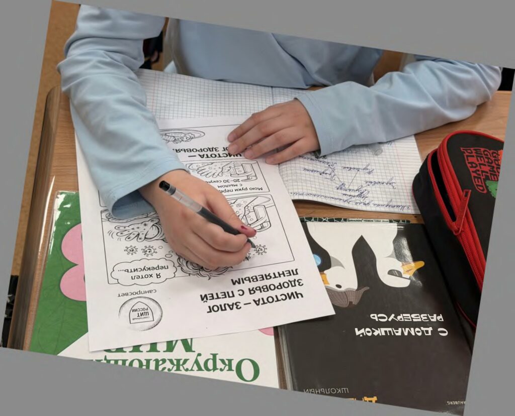 В завершение каждый участник получил подарочную раскраску с персонажем Петей Лентяевым. Иллюстрации содержат короткие правила гигиены и помогают закрепить полученные знания в игровой форме.